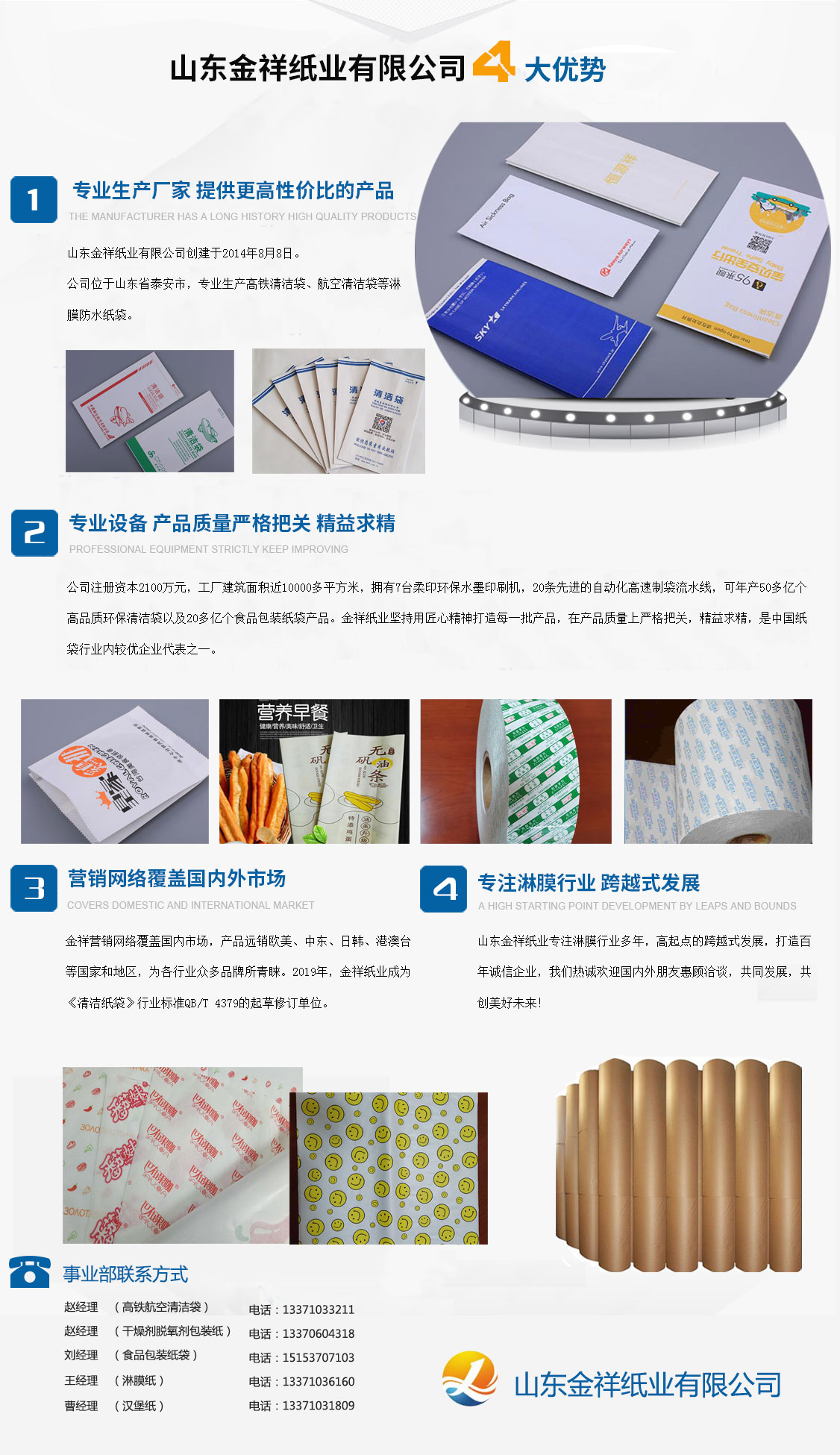 山東金祥紙業(yè)有限公司創(chuàng)建于2014年8月8日,公司位于山東泰安,專業(yè)生產(chǎn)高鐵清潔袋、航空清潔袋等淋膜防水紙袋。公司注冊(cè)資本2100萬(wàn)元,工廠建筑面積近10000多平方米,擁有7臺(tái)柔印環(huán)保水墨印刷機(jī),20條先進(jìn)的自動(dòng)化高速制袋流水線,可年產(chǎn)50多億個(gè)高品質(zhì)環(huán)保清潔袋以及20多億個(gè)食品包裝紙袋產(chǎn)品。金祥紙業(yè)堅(jiān)持用匠心精神打造每一批產(chǎn)品,在產(chǎn)品質(zhì)量上嚴(yán)格把關(guān),精益求精,是中國(guó)紙袋行業(yè)內(nèi)較優(yōu)企業(yè)代表之一。金祥營(yíng)銷網(wǎng)絡(luò)覆蓋國(guó)內(nèi)市場(chǎng),產(chǎn)品遠(yuǎn)銷歐美、中東、日韓、港澳臺(tái)等國(guó)家和地區(qū),為各行業(yè)眾多品牌所青睞。2019年,金祥紙業(yè)成為《清潔紙袋》行業(yè)標(biāo)準(zhǔn)QB/T 4379的起草修訂單位。